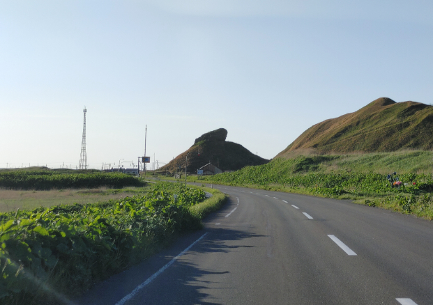 この日、強風のため間宮堂は一日閉店だったので、とても期待していたのに食べられなかった「ホタテラーメン」に思いを馳せながら、「白い道」を反対方向から通って西海岸の道路(シーニックバイウェイ「宗谷ヒストリーロード」)に出て、ルート40(国道40号)を南下し、豊富温泉へと向かいました。