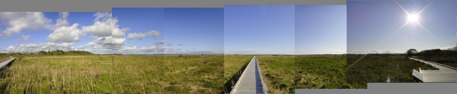 センター南側の湿原(定点撮影の6枚の写真を無理に繋いだので、肉眼での眺望とはやや異なります^^;)