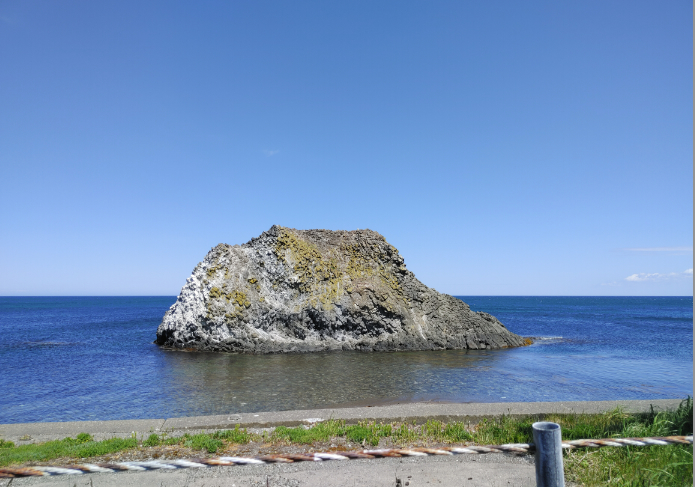 海岸沿いの「宗谷サンセットロード」を北上すると、まずは「抜海岩」という奇岩が迎えてくれました。なかなかユニークな形をしています。