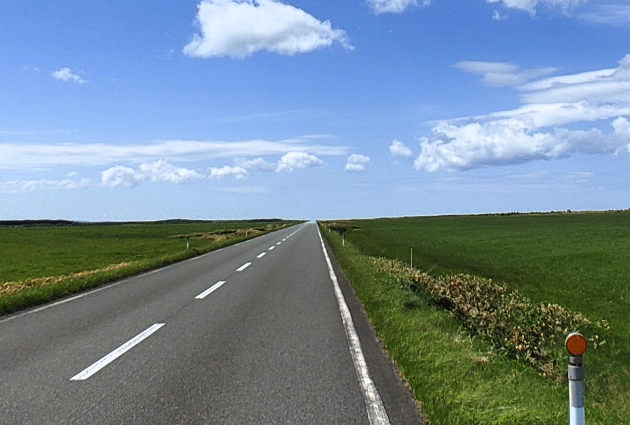 ちなみに、この道路の愛称「オロロンライン」は、なんと、北は稚内から南は約380kmも先の小樽までを結んだ海岸道路をさしているようで、自分が走る区間はその一部の最北の区間になります。